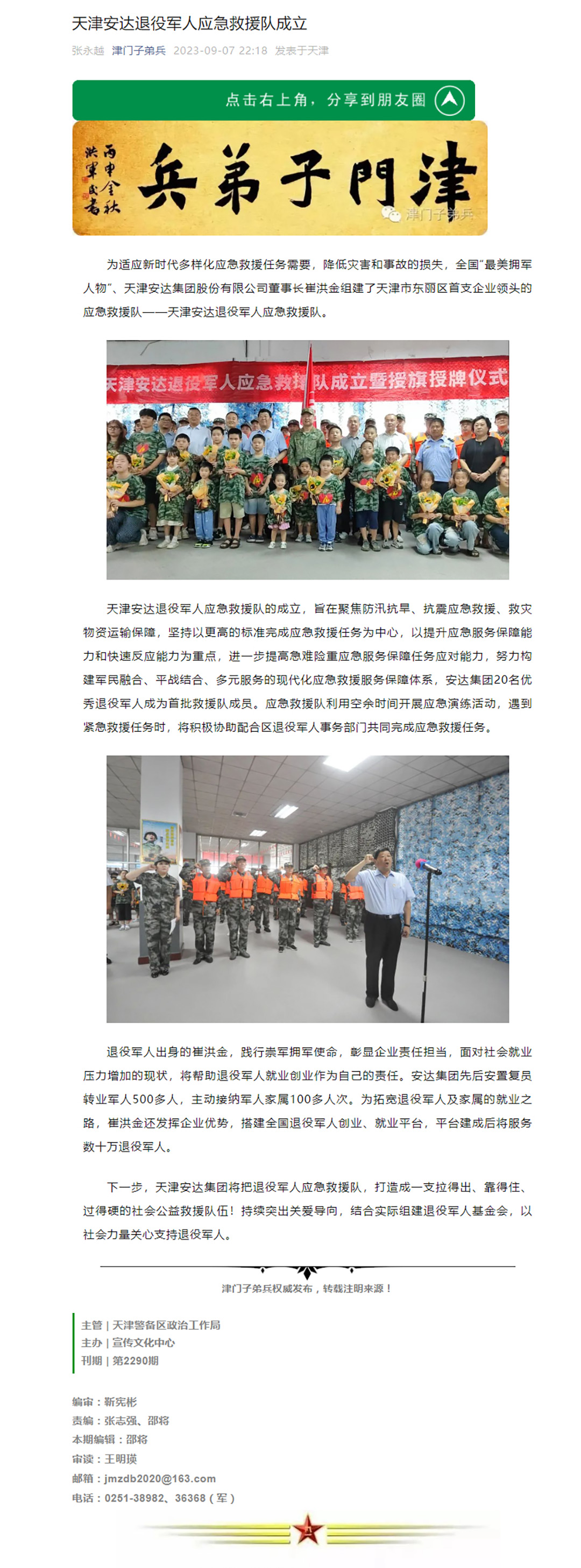 "津门子弟兵”宣传安达集团退役军人应急救援队成立
