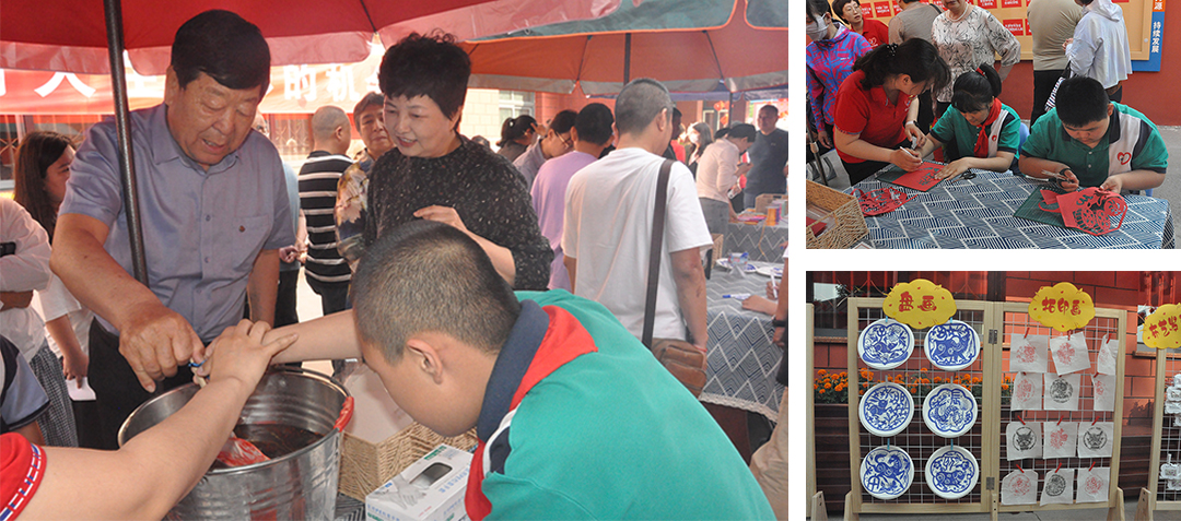 活动伊始,在尚俊歆校长的陪同下,崔洪金董事长缓步走进孩子们的手工作品和画作展区。展区内,斑斓的色彩跃然纸上 —— 用稚嫩笔触描绘的盘画和拓印画迎着阳光绽放,红色剪纸画作栩栩如生,每一件作品都凝结着孩子们对世界的独特感知与炽热向往。崔洪金董事长驻足良久,认真倾听每幅画、每件手工艺品背后的故事,眼中满是赞许与心疼。