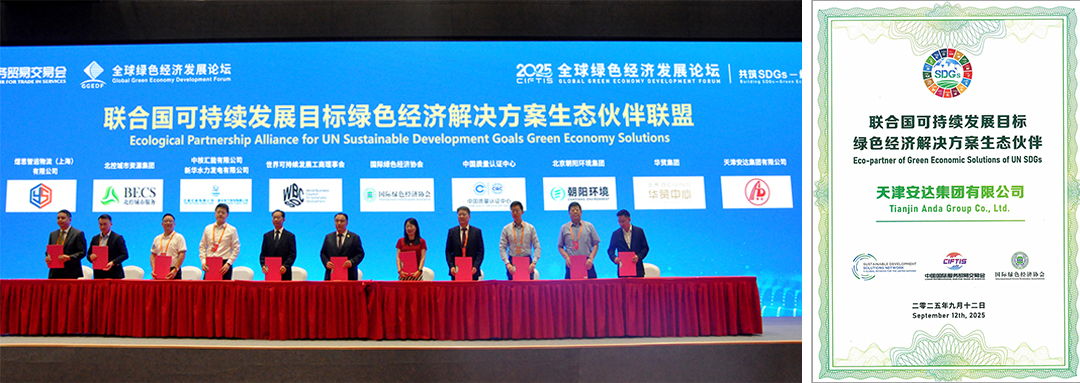多年来,安达集团始终紧跟国家绿色发展战略,持续加大在绿色技术研发、环保项目推进等方面的投入。此次在服贸会全球绿色经济发展论坛上的精彩表现,是对安达集团在绿色环保领域多年深耕的高度认可,也为集团未来的发展带来了新的机遇和挑战。未来,安达集团将在党委书记、董事长崔洪金的带领下,继续发挥自身优势,不断创新绿色技术与服务,深化行业合作,为推动全球绿色经济发展和提速 2030 年可持续发展目标进程贡献更多力量。